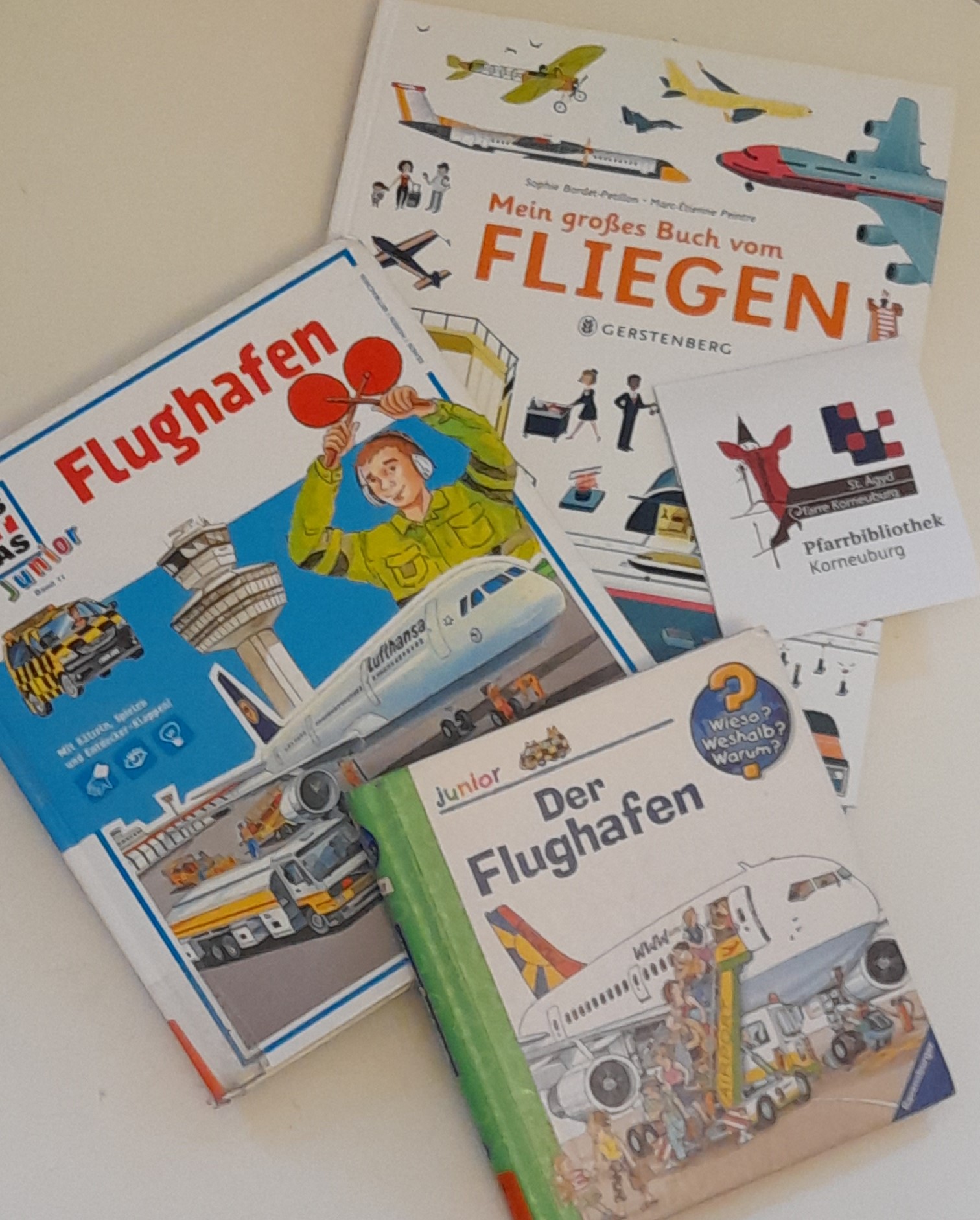 Der Flughafen – groß und interessant. Was dort alles zu sehen ist! In der Pfarrbibliothek sind Bücher über den Flughafen und das Fliegen zu finden.