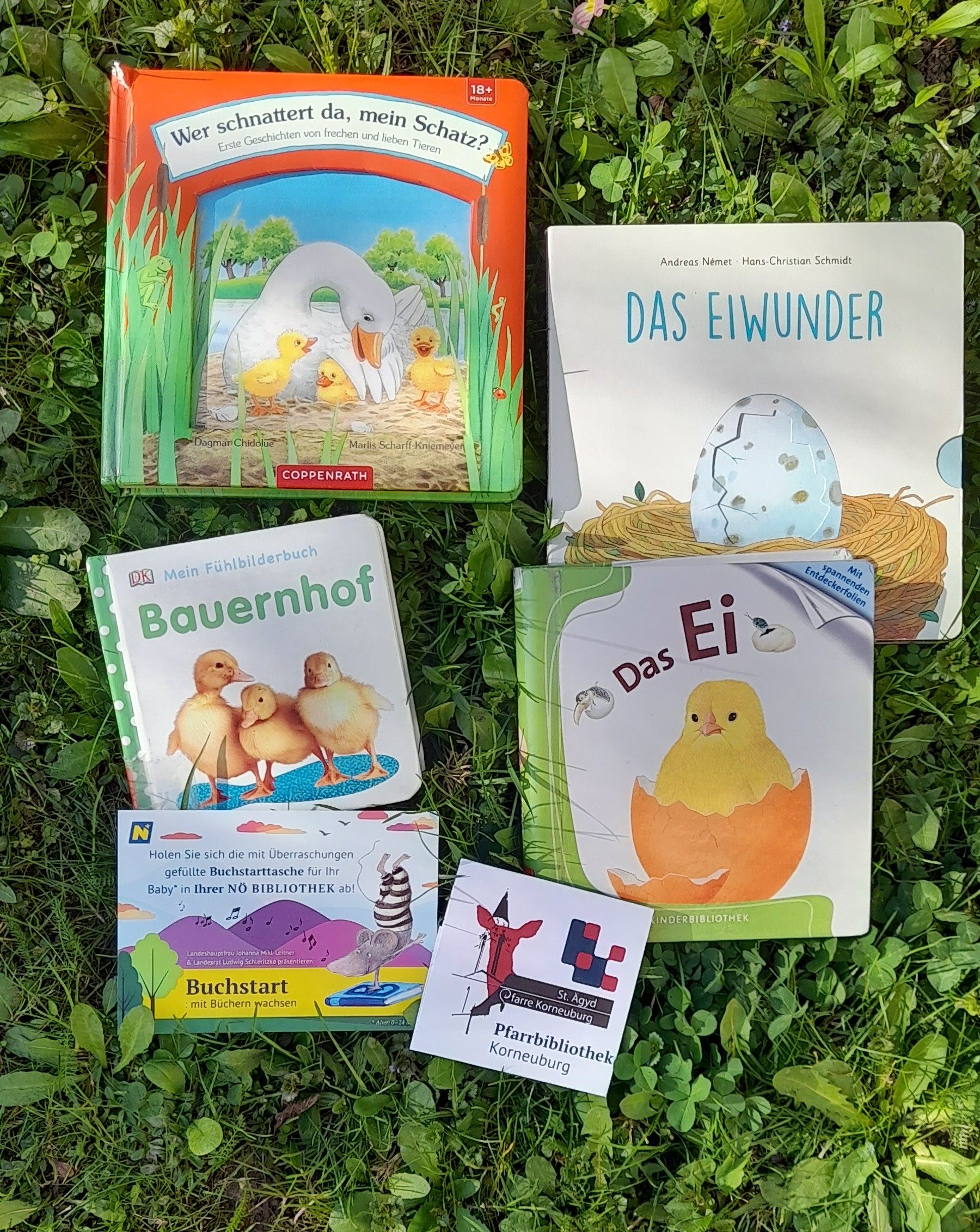 Bücher zu Buchstart gibt’s in der Pfarrbibliothek zu finden, aber auch viele weitere Bücher für die ganz Kleinen.