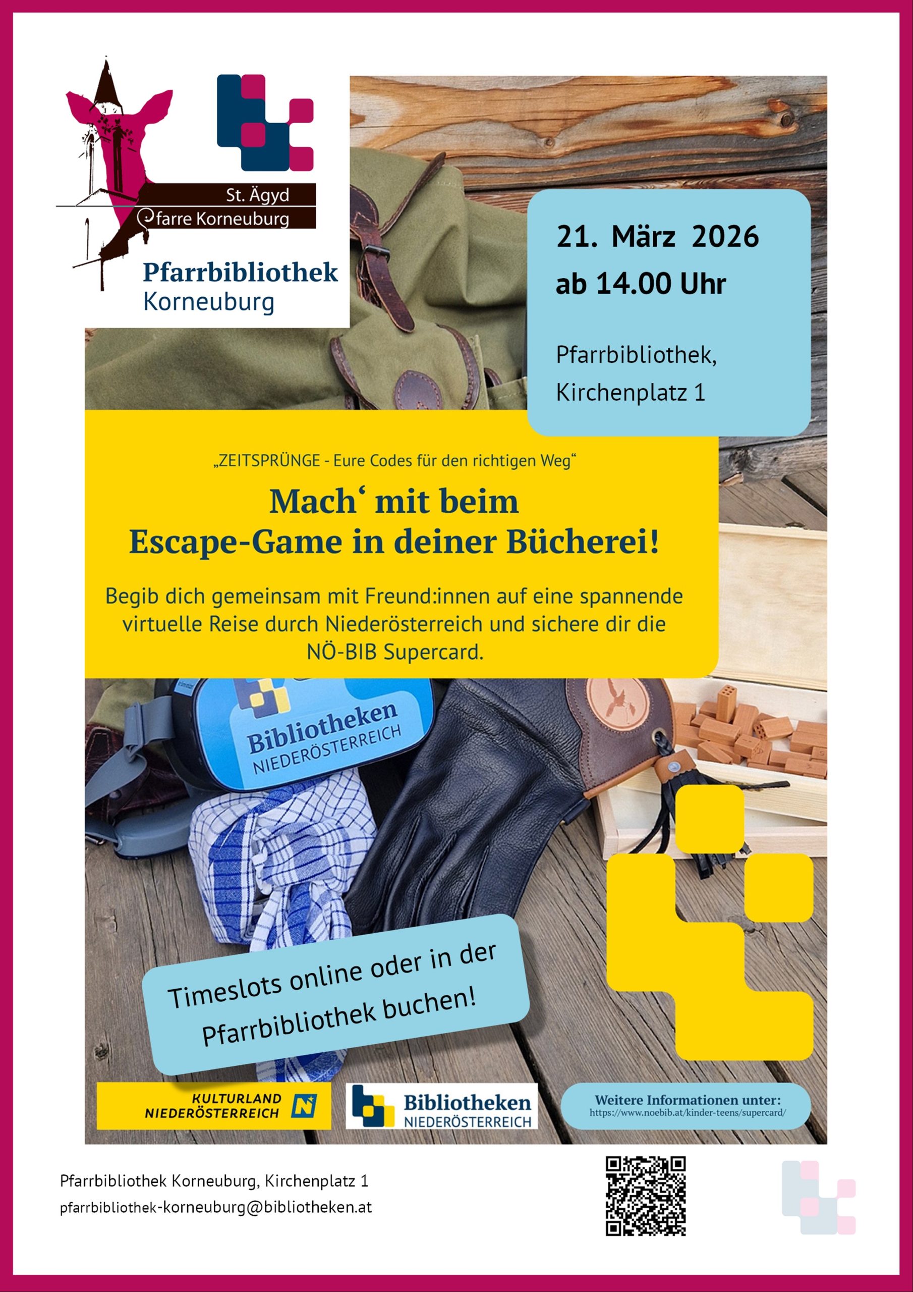 Timeslots online oder in der Pfarrbibliothek buchen!